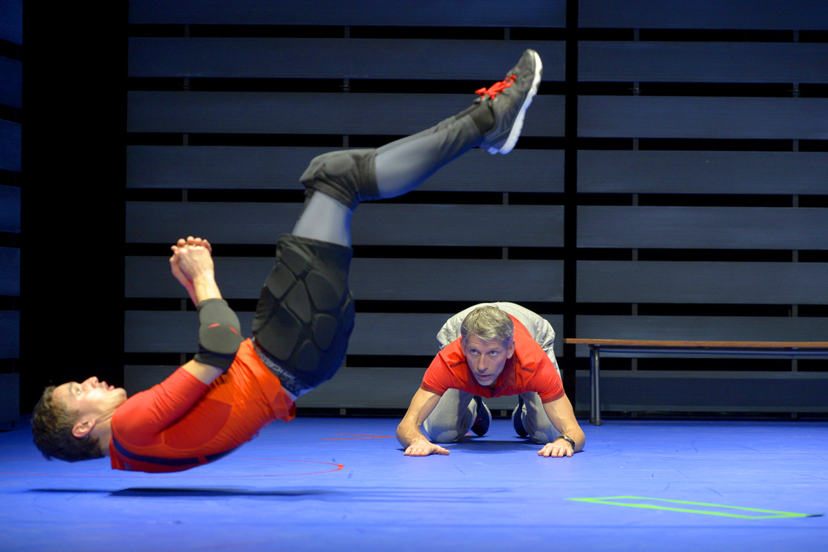 Entre l’acteur et auteur Jacques Gamblin et le danseur Bastien Lefèvre, le courant passe. Si parfois il est électrique c’est pour mieux court-circuiter le manque de vigilance ou la tentation du renoncement, tout ce qui nous pousse à tourner le dos aux rêves que nous nous sommes fixés. Ce spectacle qui propose le face à face d’un entraineur et son athlète ne fait pas l’apologie des gagnants sans scrupule ni morale. Il raconte plutôt la façon dont l’humilité, la patience, la confiance permettent de réaliser ses désirs.